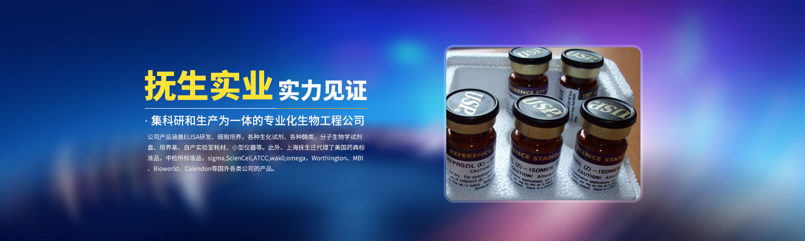 上海撫生實業(yè)有限公司(ShanghaiFushengIndustrialCo.,Ltd.,China)是一家生物企業(yè),主要從事免疫學(xué)、分子生物學(xué)和常規(guī)生化試劑的銷售。主營產(chǎn)品:生化試劑、試劑盒、ELISA試劑盒、抗體、重組蛋白、生化檢測試劑盒、分光光度法檢測試劑盒、熒光定量PCR檢測試劑盒、細(xì)胞株、原代細(xì)胞、細(xì)胞培養(yǎng)基、標(biāo)準(zhǔn)溶液產(chǎn)品。代理并銷售進(jìn)口SIGMA試劑、abcam抗體、R&D抗體、CST抗體、ATCC細(xì)胞、BD公司、GE公司、賽默飛世爾公司產(chǎn)品。上海撫生實業(yè)有限公司(ShanghaiFushengIndustrialCo.,Ltd.,China)先后與天津中醫(yī)學(xué)院、復(fù)旦大學(xué)、上海交通大學(xué)醫(yī)學(xué)院、上海交通大學(xué)、華東師范大學(xué)、第二軍醫(yī)大學(xué)、南京大學(xué),暨南大學(xué),南京工業(yè)大學(xué),曙光醫(yī)院、華山醫(yī)院、瑞金醫(yī)院、上海有機研究所、中科院上海分院等多家單位建立了良好的合作關(guān)系。本公司可為您提供科研...